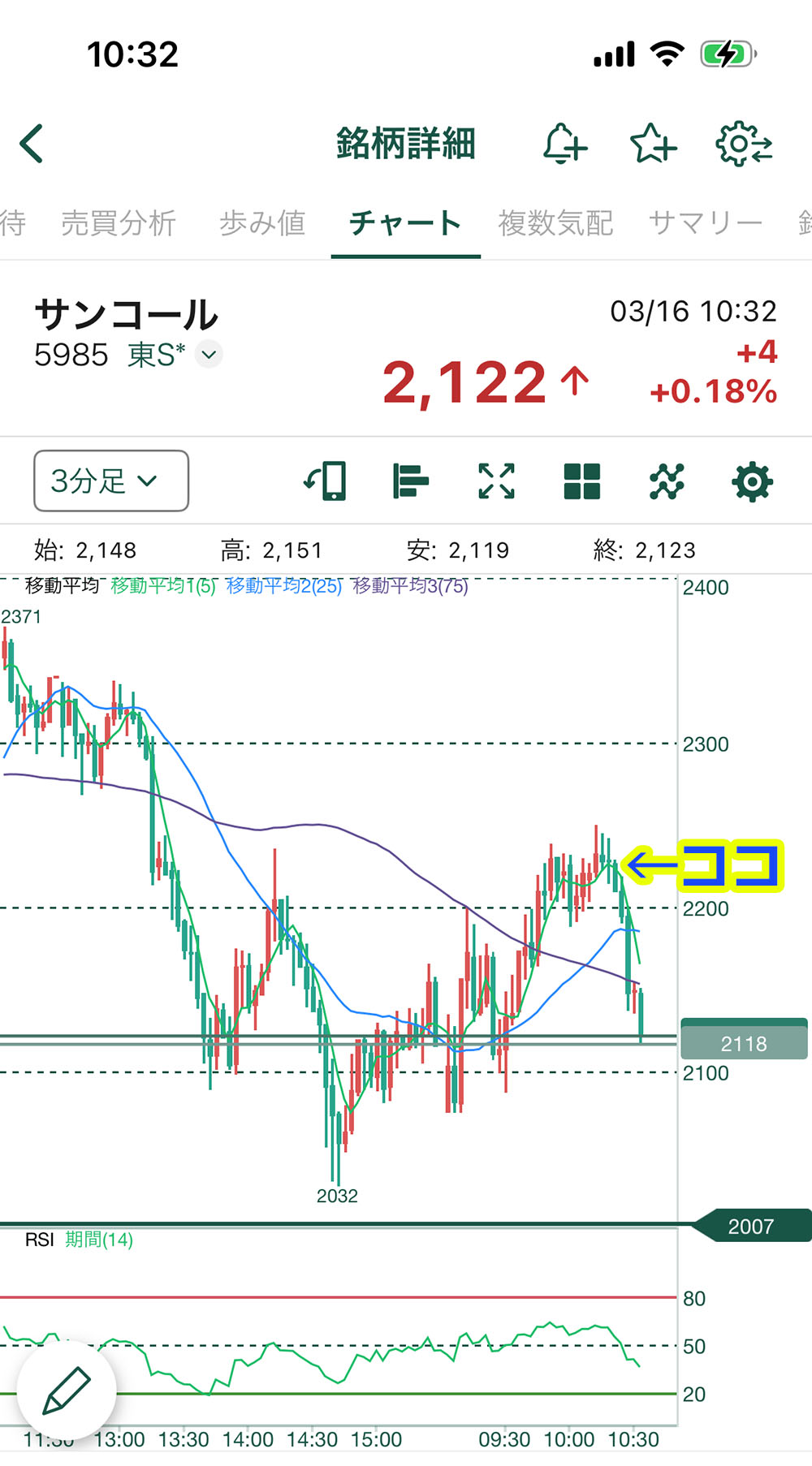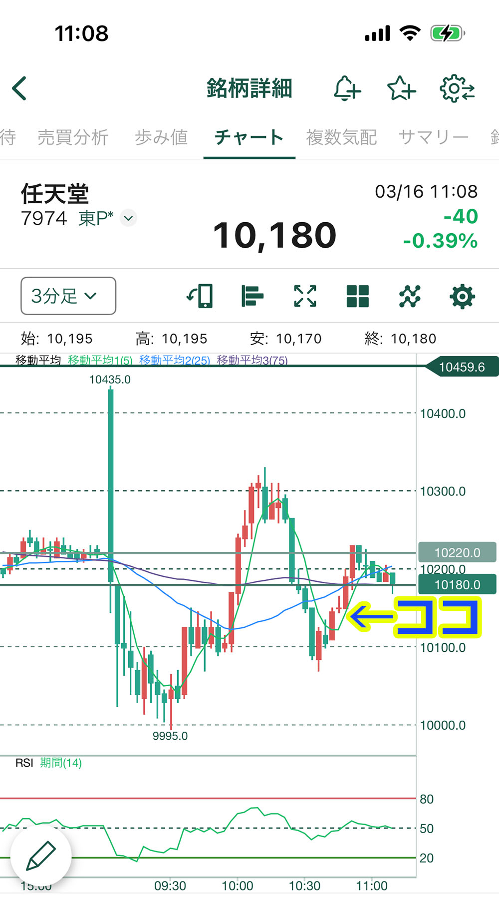全体的に下げ相場の中、好材料が昨日?発表されたのはさすがの私でも知っている。朝一噴いてその後急落。からの反動してきたかな?というところで監視していました。