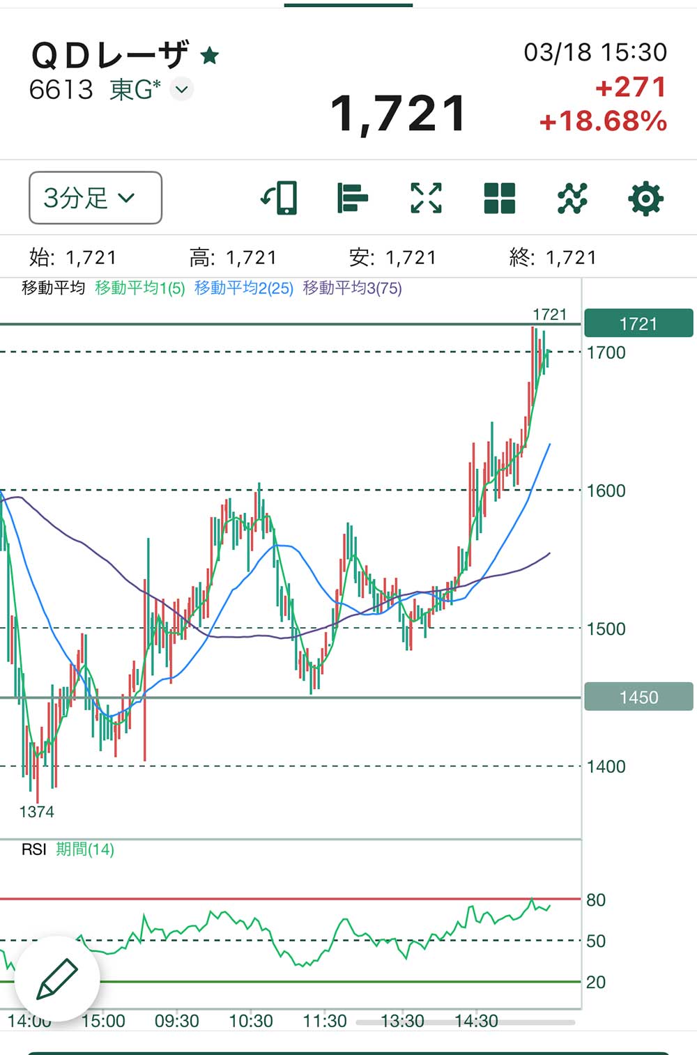 後場はやらないと決めているので、朝一上がっているところでちょろっとエントリー。ランチ代程度(¥1,500)を稼いで即撤退。