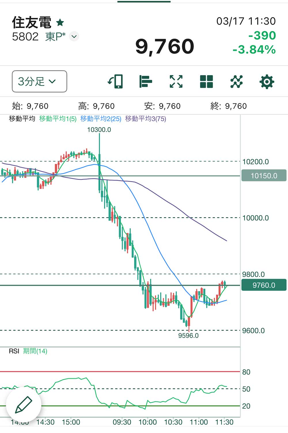 記念に残します。飯ウマトレード。会場はコチラ↑住友電工(5802)。