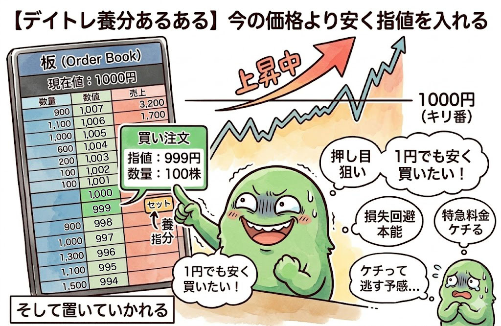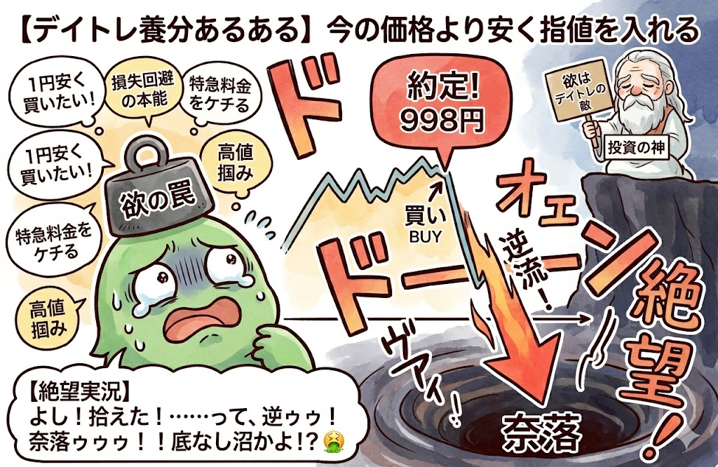 【デイトレ養分あるある】今の価格よりも安く指値を入れる