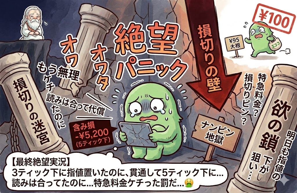 たった数ティック(株価が動くときの最小単位)をケチったせいで大きな利益を逃す😱オワタ