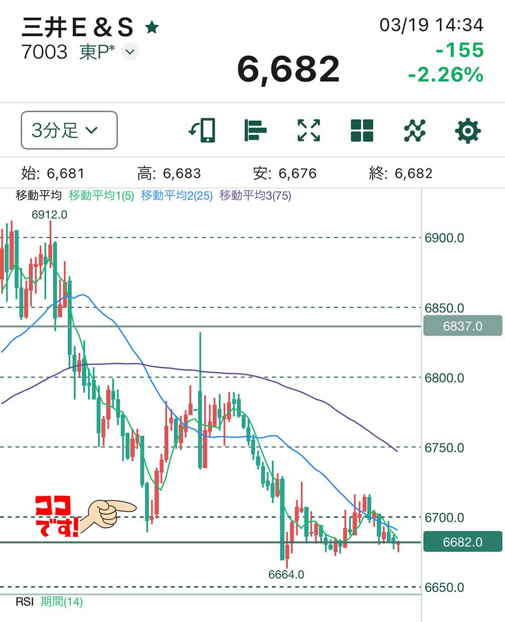 ここまで大きな陰線は大体後場に起こる。その結果、私はこの日を境に後場はやらないというマイルールを作りました。そして、この日を境に高値掴み恐怖症をより悪化させました😨