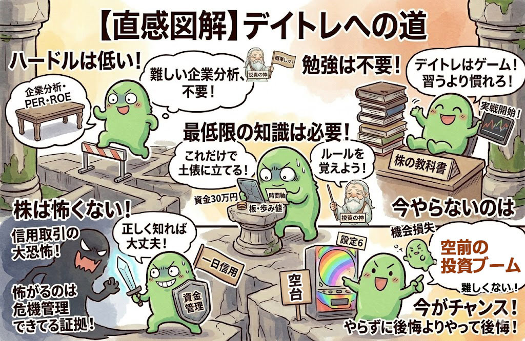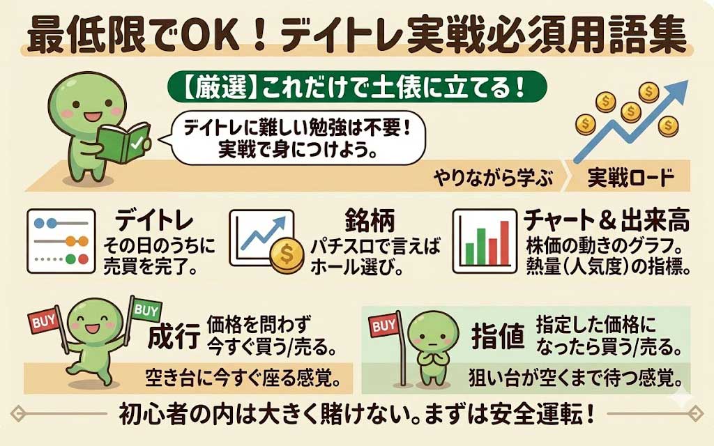 デイトレのように時間軸の短い株式投資の場合は、企業分析や経済の難しい話は勉強しなくてよい。