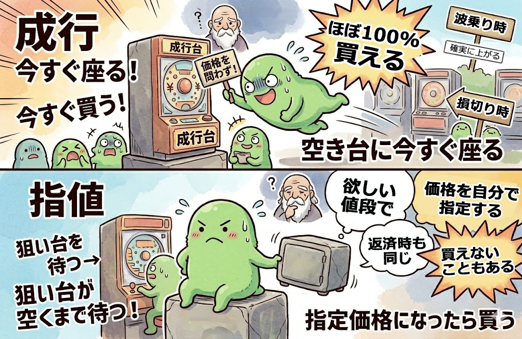 「成行(なりゆき)」と「指値(さしね)」