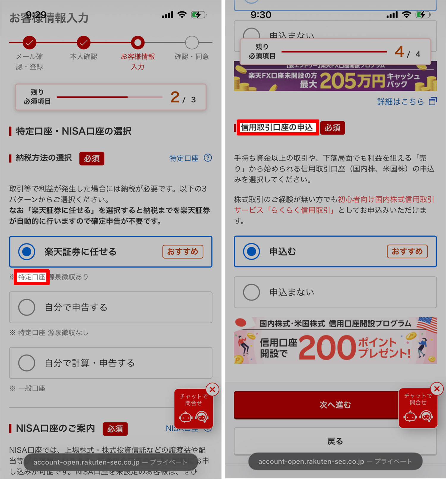 他の証券会社で口座開設をする時も同様、特定口座を選ぶこと。そして、信用取引口座の申し込みをすること。